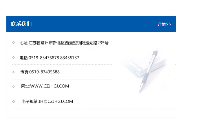 傳真:0519-83435688    郵編:213135    網址:WWW.czjhgj_com.yuyubaojie.com    電子郵箱:JH@czjhgj_com.yuyubaojie.com